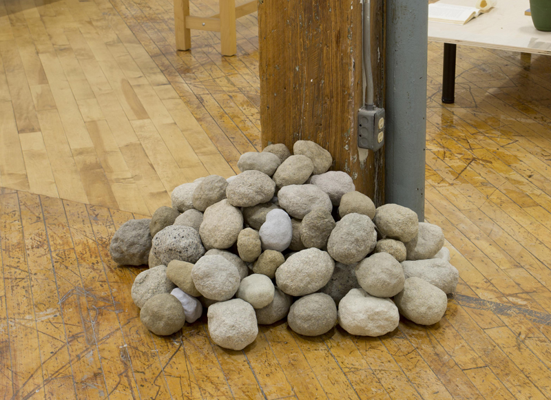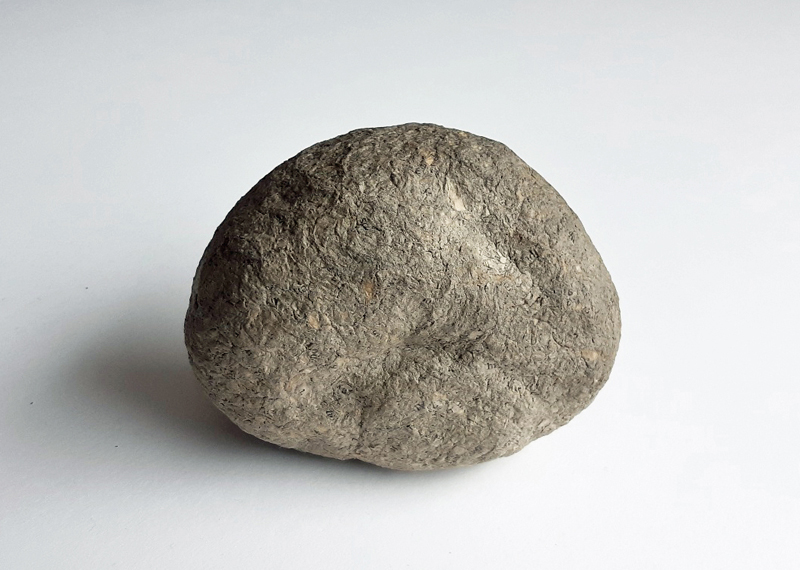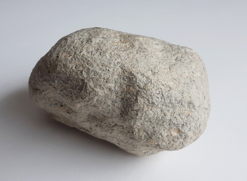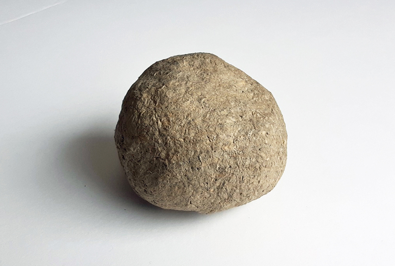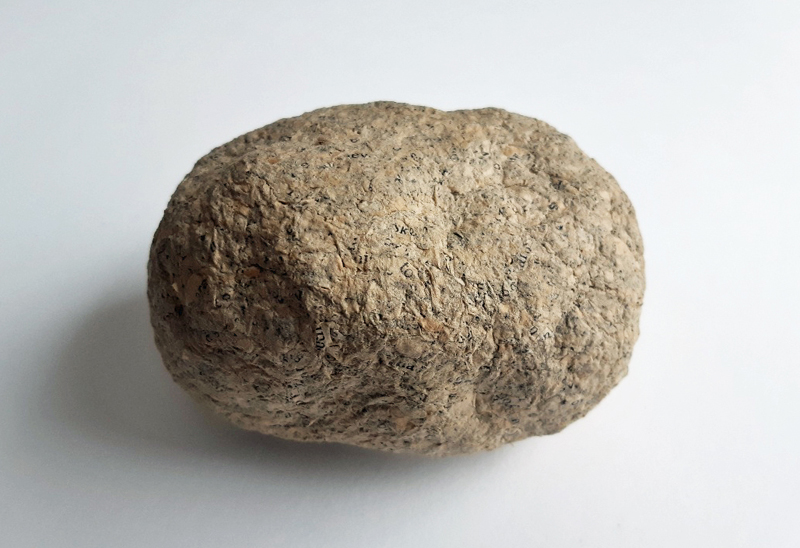 I picked up a book from my bookshelf, tore it up, shredded all its pages, soaked it in hot water, squeezed water from it, crumbled it, mixed it with glue, and formed it into a rock-shaped lump.
