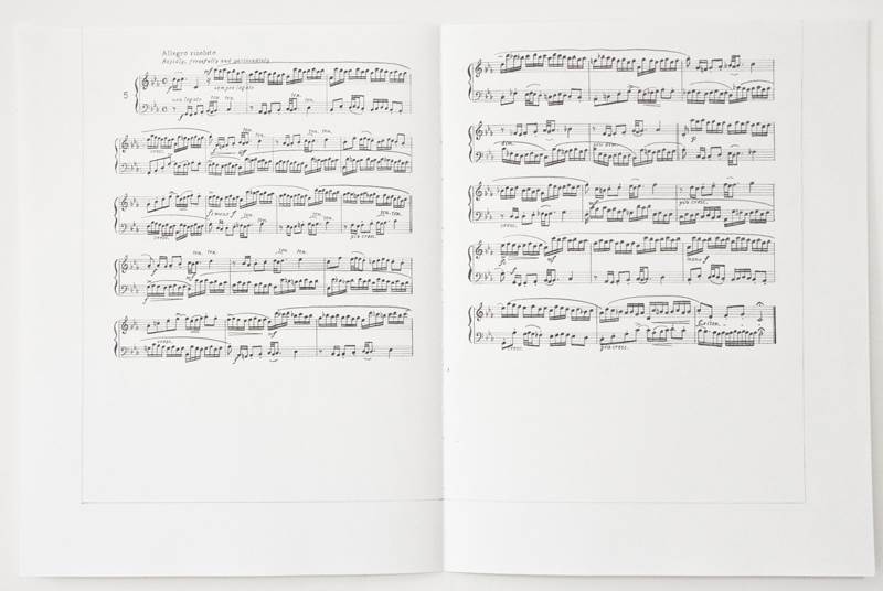In Variation II, all the rests, which are an indication of an interval of silence in musical notation, were taken away and the sounds were rearranged so the conventional time line of the music was collapsed.