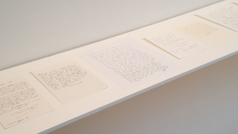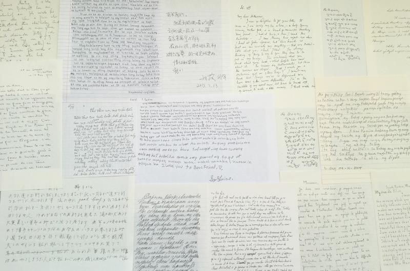 Letters is a series of more than 100 drawings based on the images of hand-written letters found on the Internet. The collected images of letters are printed and hand-copied onto paper with a pencil using a light pad. The letters are written in various languages, from Tagalog to Armenian, and by some well-known and mostly unknown people from different places and times.